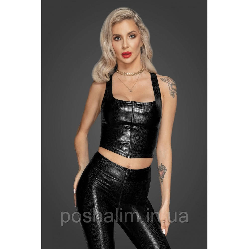 Топ еротичний вініловий зі зміїним тисненням розмір L F275 Noir Handmade, чорний